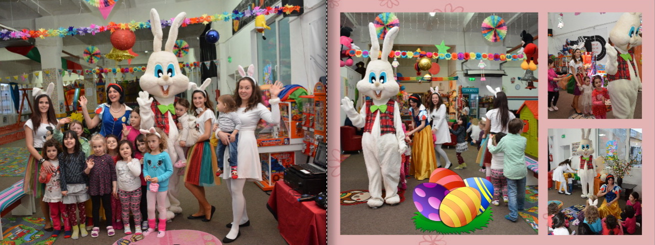 Buna dispozitie va fi asigurata de animatori impreuna cu Mickey si Minnie Mouse: jocuri, muzica si dans. Iepurasul va aduce cadouri pentru fiecare copil. Toti copiii prezenti vor participa la TOMBOLA: PREMIUL 1: Abonament 10 intrari de 1 zi la joaca; PREMIUL 2: -25% organizare petrecere 8 copii; PREMIUL 3: Abonament 20 de ore la joaca.